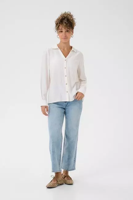 Heidy bluse i lys lin har et naturlig og dempet uttrykk som gir garderoben et stilrent preg. Stoffblandingen på 70?% viscose, 18?% nylon og 12?% lin gjør blusen myk og lett, samtidig som lininnslaget tilfører en subtil tekstur og et luftig fall. Den lyse lin-fargen gir et tidløst og minimalistisk uttrykk som passer like godt under en blazer på kontoret som med et par sneakers for en avslappet helgestil. Den feminine fasongen og den myke draperingen gjør Heidy bluse behagelig å bruke hele dagen, samtidig som den fremhever et elegant og naturlig uttrykk.