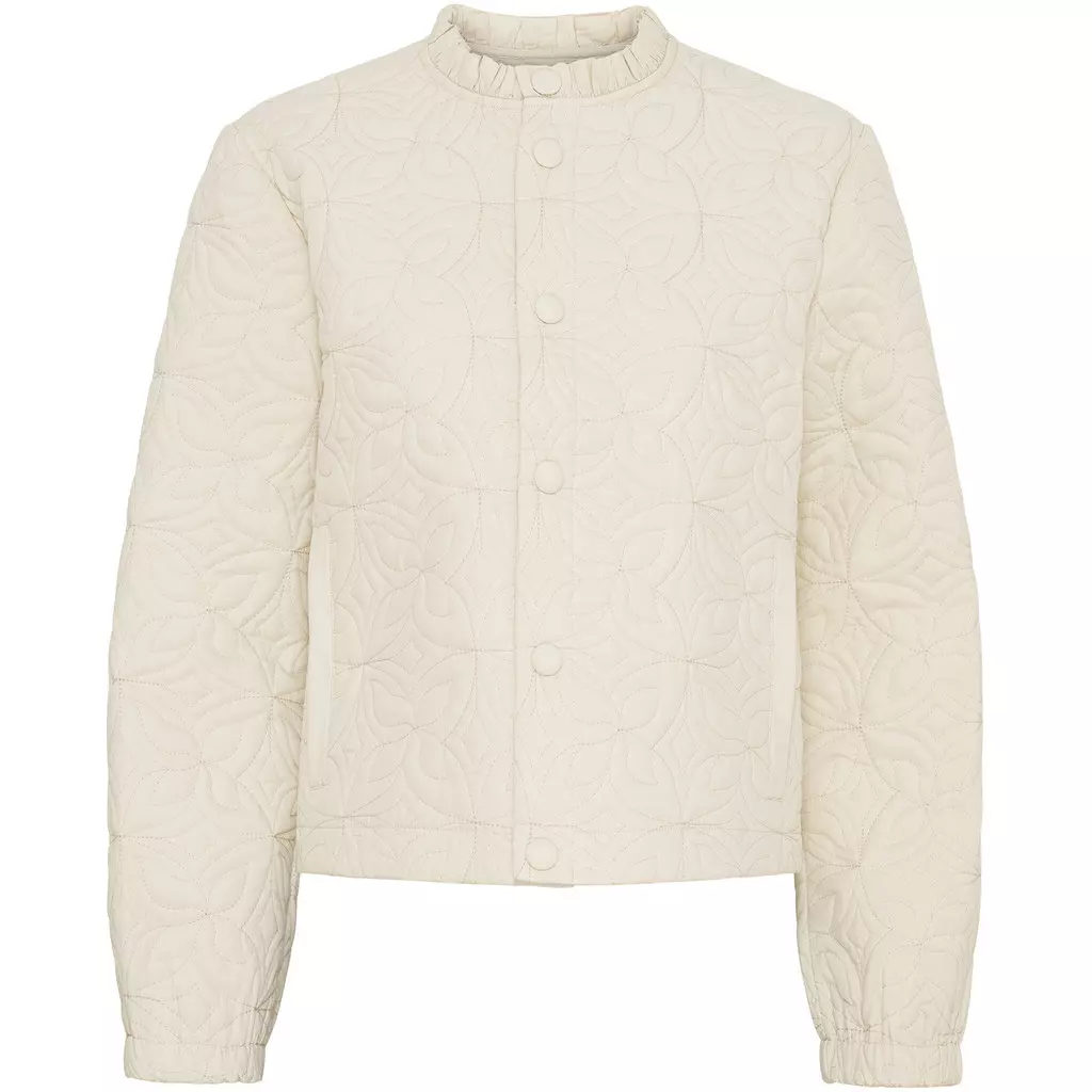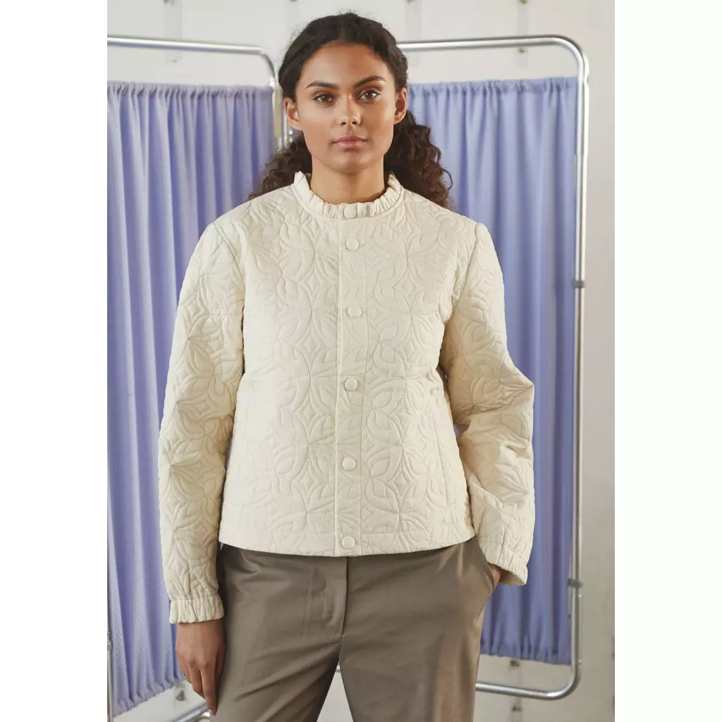 Lana Jacket er en stilig quiltet jakke med et unikt mønster som gir jakken karakter. Designet med rund hals og en enkel knappelukking foran får jakken et feminint og sofistikert uttrykk. De diskrete sidelommene legger til funksjonalitet, mens det quiltede mønsteret gir behagelig volum og et eksklusivt utseende. Jakken er laget av 100% bomull, noe som gjør den myk og behagelig å ha på.