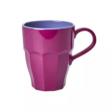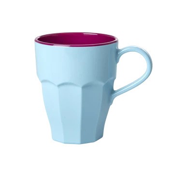 Vårt høye melaminkrus i en deilig farge på utsiden av kruset og en søt farge på innsiden. Perfekt for en kopp te eller en varm sjokolade foran peisen med et koselig teppe.