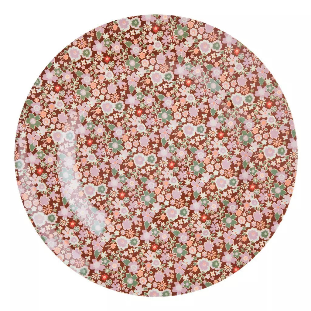 Melanin middagstallerken brun m/blomster