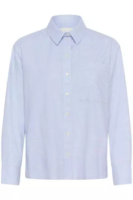 klassisk blå skjorte i myk, økologisk bomull for et rent og elegant uttrykk. Rett modell med skjortekrage, knappelukking foran og lange ermer gir et tidløst uttrykk som enkelt kan styles både til jeans og dressbukser. Laget av?100?% økologisk bomull for naturlig komfort og et pustende, behagelig plagg hele dagen