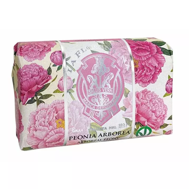Vakker og velduftende såpe i lekkert design. Såpen tørker ikke ut huden og har et tykt, herlig skum. Inneholder blant annet olivenolje og andre naturlige oljer. Med en nydelig duft av vakre pioner.